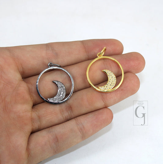 Antique Look Cresent Moon Pendant Diamond Charm Pendant Pave Diamond Rosecut Pendant 925 Sterling Silver Pendant Handmade Diamond Pendant