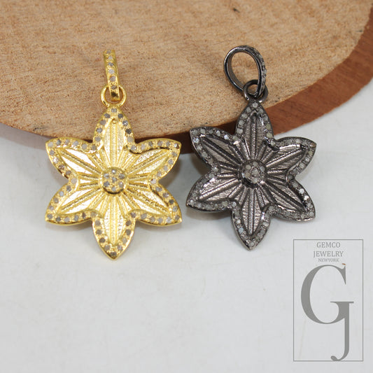 1pc Daisy Flower Shape Designer Pendant Flower Rocecut Pave Diamond Pendant 925 Sterling Silver Handmade Antique Finish Diamond Jewelry