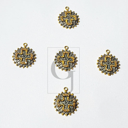 Pave Diamond Rosecut Pendant 925 Sterling Silver Handmade Diamond Pendant Beautiful Cross Design Pave Diamond Vermeil Gold And Oxidised