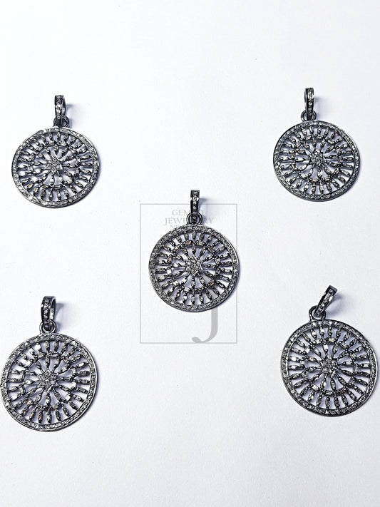 Pave diamond rosecut pendant 925 sterling silver pendant handmade diamond pendant beautiful designed circle shaped diamond pendant