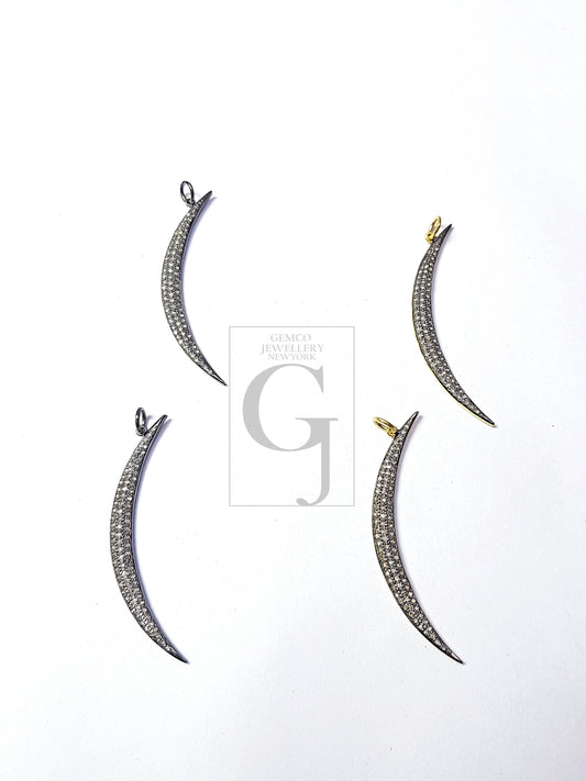 Pave Diamond Rosecut Pendant 925 Sterling Silver Pendant Handmade Diamond Pendant Beautiful Design Crescent Moon Shaped Diamond Pendant