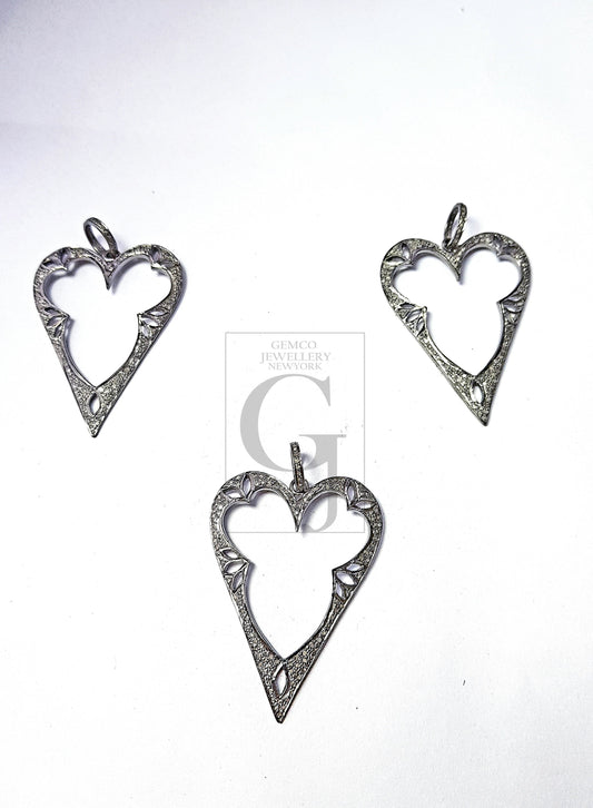 Beautiful Heart Cut Design Pave Diamond Rosecut Pendant 925 Sterling Silver Pendant Handmade Diamond Pendant