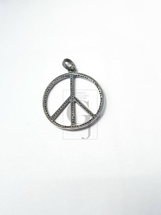 Beautiful Peace Designer Symbol Pendant Rocecut Pave Diamond Pendant 925 Sterling Silver Handmade Finish Diamond Jewelry