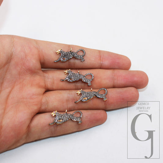 1pc Panther Pendant Pave Diamond Rosecut Pendant 925 Sterling Silver Pendant Handmade Diamond Pendant Beautiful Animal Charm Pendant Jewelry