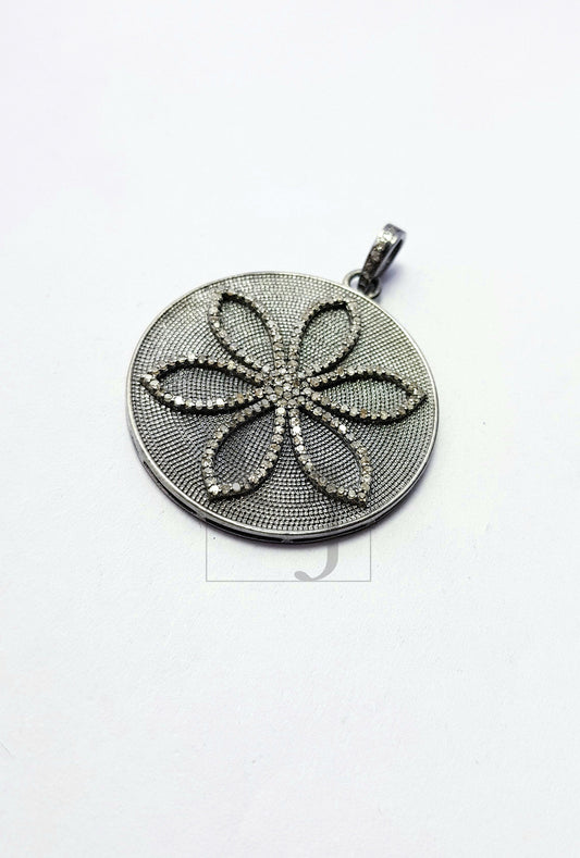 Round Shaped Antique Look Rosecut Pave Diamond Pendant 925 Sterling Silver Handmade Finish Flower Design Diamond Jewelry Pendant