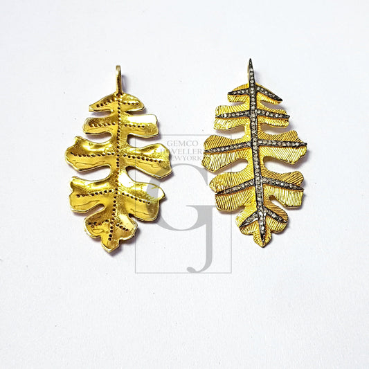 Pave diamond rosecut pendant 925 sterling silver finish handmade diamond pendant golden very beautiful new design leaf diamond pendant
