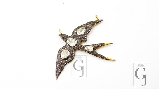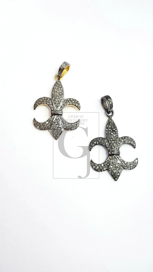 1pc Latest Beautiful Lucky Pendant Design Rosecut Pave Diamond Pendant 925 Sterling Silver Handmade Finish Diamond Pendant Jewelry