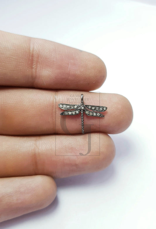5pcs Beautiful Dragonfly Design Rosecut Pave Diamond Pendant 925 Sterling Silver Handmade Finish Diamond Pendant Jewelry Charms