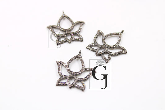 Beautiful Flower Designer Jewelry Pendant Rosecut Pave Diamond Pendant 925 Sterling Silver Handmade Finish Diamond Charms Necklace Pendant