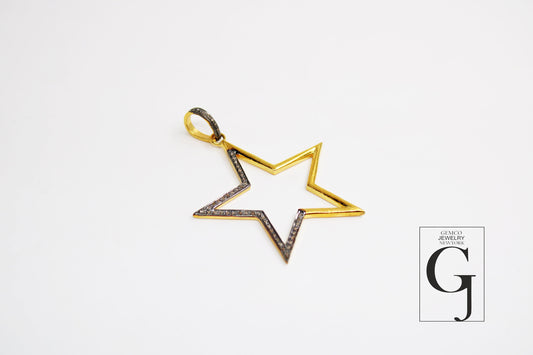 Star Gift Pendant 14k Gold Designer Rosecut Pave Diamond Pendant 925 Sterling Silver Handmade Finish Diamond Charms Necklace Pendant