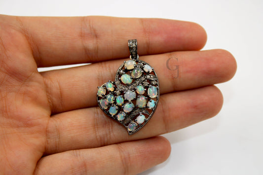 Antique Look Beautiful Opal Pendant Rosecut Pave Diamond Pendant 925 Sterling Silver Handmade Finish Diamond Charms Necklace Pendant