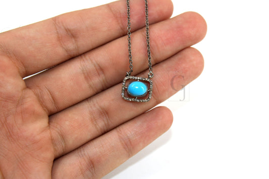 Beautiful Turquoise Pendant Necklace Designer Rosecut Pave Diamond Pendant Sterling 925 Silver Handmade Finish Diamond Charms Pendant