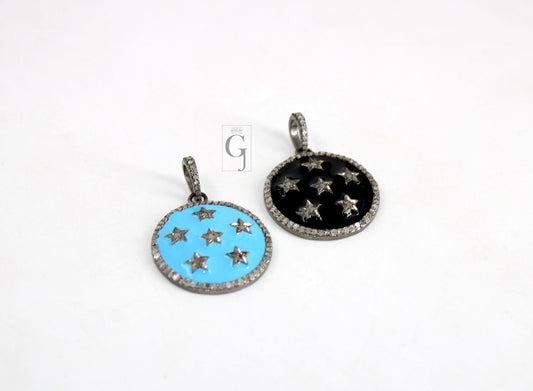 Beautiful Enameling Star Pendant Designer Rosecut Pave Diamond Pendant Sterling 925 Silver Handmade Finish Diamond Charms Necklace Pendant