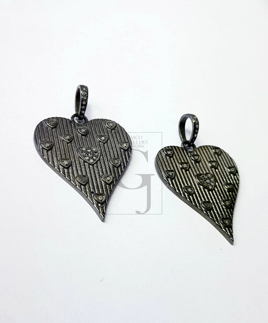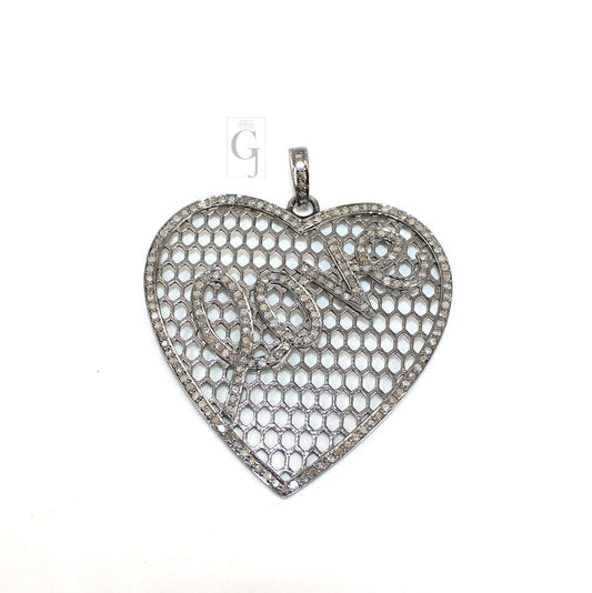 Oxidized Finish Love Heart Pendant Rocecut Pave Diamond Love Pendant 925 Sterling Silver Handmade Finish Love Diamond Pendant Jewelry
