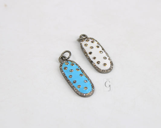 Beautiful Enamelling Pendant Designer Rosecut Pave Diamond Pendant Sterling 925 Silver Handmade Finish Diamond Charms Necklace Pendant