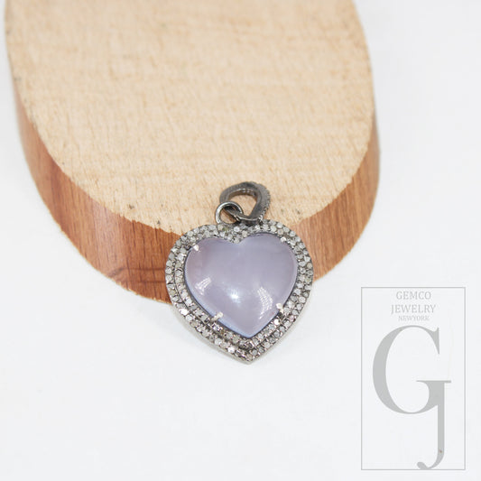 Heart Shape Chalcedony Pendant Designer Rosecut Pave Diamond Pendant 925 Sterling Silver Handmade Finish Diamond Charms Necklace Pendant