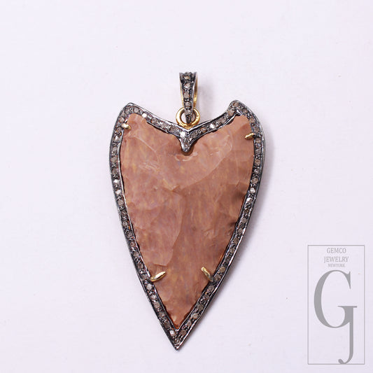 Antique Arrowhead Pave Rosecut Diamond Pendant in 925 Sterling Silver | Handmade Finish Diamond Jewelry