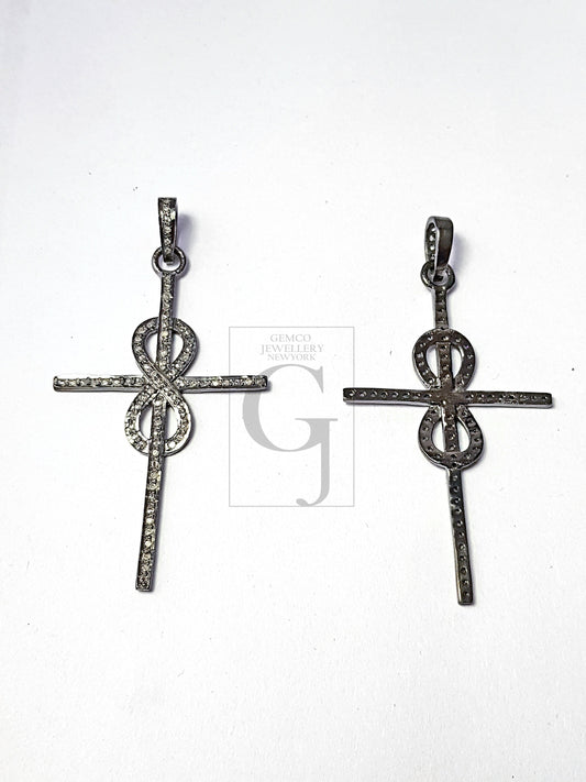 Very Beautiful Pave Diamond Rosecut Pendant 925 Sterling Silver Pendant Handmade Diamond Pendant Beautiful Cross Design Diamond Pendant