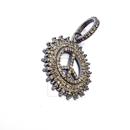 Beautiful Peace Sign Design Diamond Charm Pendant Pave Diamond Rosecut Pendant 925 Sterling Silver Pendant Handmade Diamond Pendant