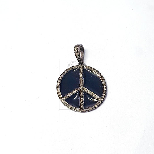 Round peace design pendent enamel pendent charm Pave diamond rosecut pendant 925 sterling silver pendant handmade diamond pendant 35mm