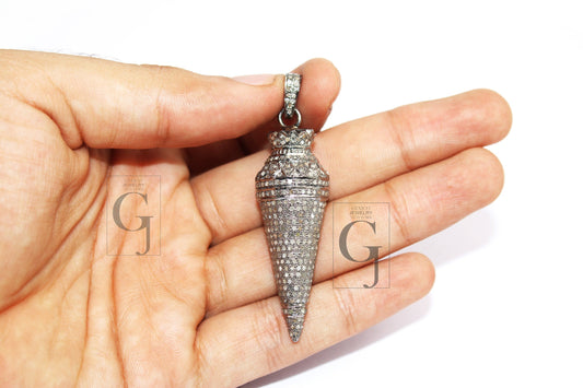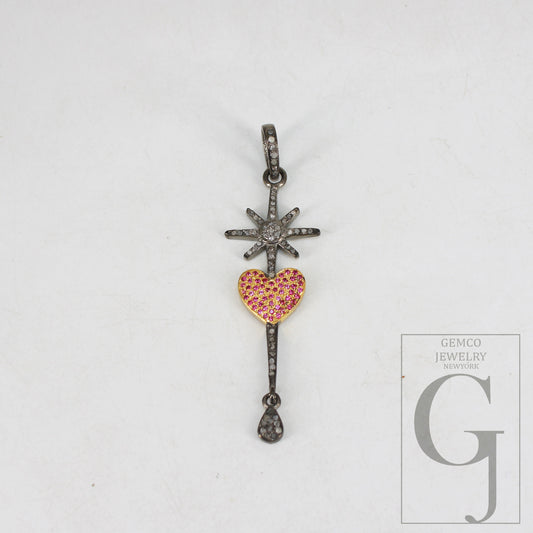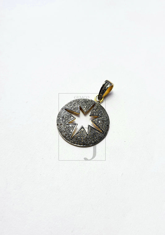 Starburst Designer Rosecut Pave Diamond Pendant 925 Sterling Silver Handmade Finish Diamond Jewelry Pendant