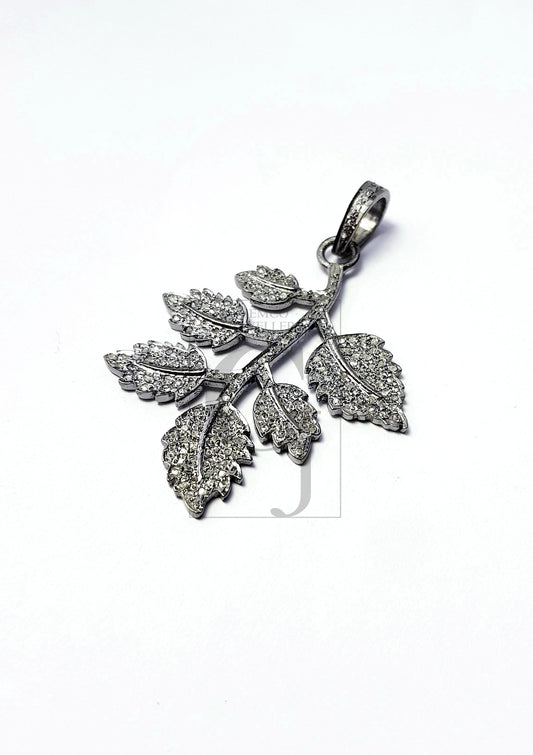 Beautiful Leaf Pendent Rosecut Pave Diamond Pendant 925 Sterling Silver Handmade Finish Leaf Design Diamond Pendant Jewelry