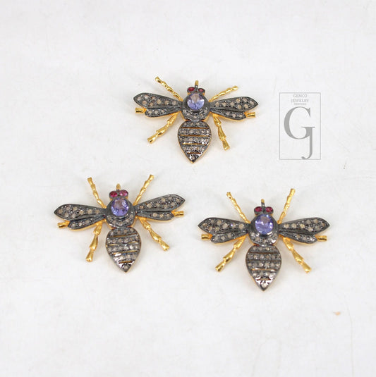 Beautiful Tanzanite Designer Bee Pendant Rosecut Pave Diamond Pendant 925 Sterling Silver Handmade Finish Diamond Jewelry Necklace Pendant