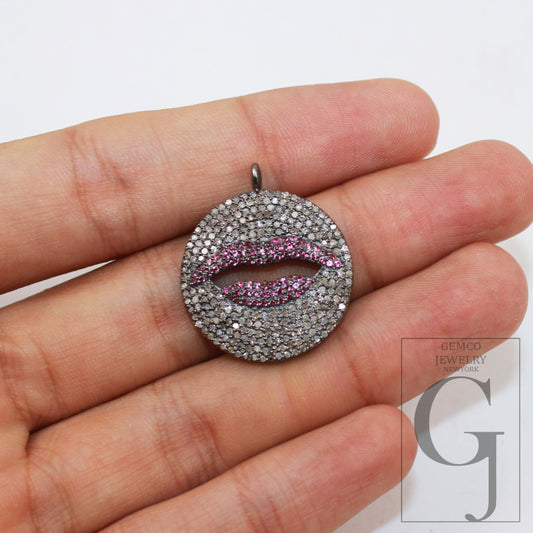 1pc Ruby Lips Pendant Rosecut Pave Diamond Pendant 925 Sterling Silver Handmade Finish Lips Shaped Diamond Pendant Jewelry Charms