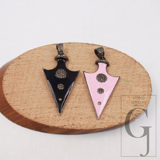Enameling Colored Arrowhead Pendant Spike Charm Pave Diamond Rosecut Pendant 925 Sterling Silver Pendant Handmade Diamond Pendant Jewelry