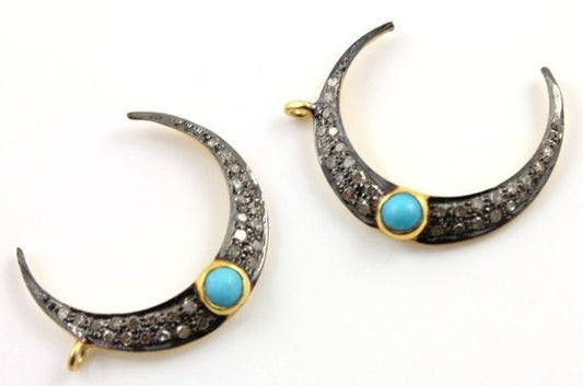 Pave diamond rosecut pendant 925 sterling silver pendant handmade diamond pendant Pave Diamond Moon Charm Turquoise diamond pendant charm