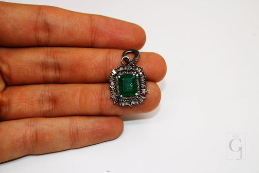 Fashionable baguette designer emerald pendant Rosecut pave diamond pendant 925 sterling silver handmade finish diamond charm necklace pendan