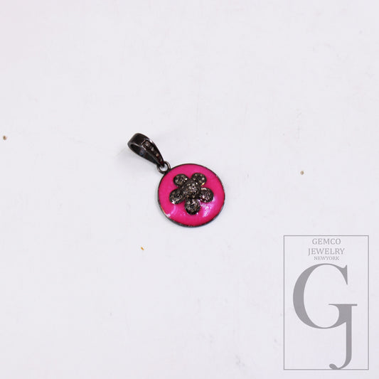 Neon Pink Enameling Flower Pendant Designer Rosecut Pave Diamond Pendant Sterling 925 Silver Handmade Finish Diamond Charms Necklace Pendant