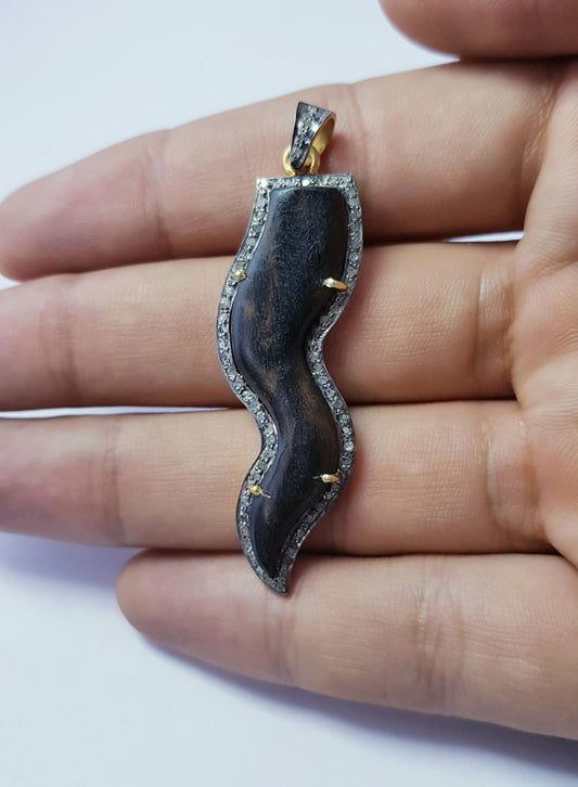 Beautiful Designer Wooden Pave Diamond Pendant 925 Sterling Silver Handmade Finish Diamond Pendant Jewelry