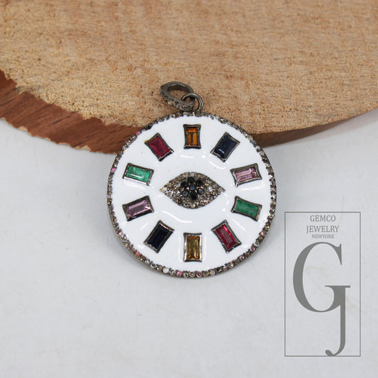 Beautiful Designer Evil Eye Enamel Pendants Rosecut Pave Diamond Pendant 925 Sterling Silver Handmade Finish Diamond Charms Necklace Pendant