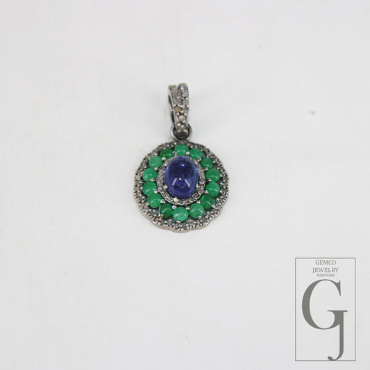 Antique Look Tanzanite Emerald Pendant Designer Rosecut Pave Diamond Pendant 925 Sterling Silver Handmade Finish Diamond Necklace Pendant