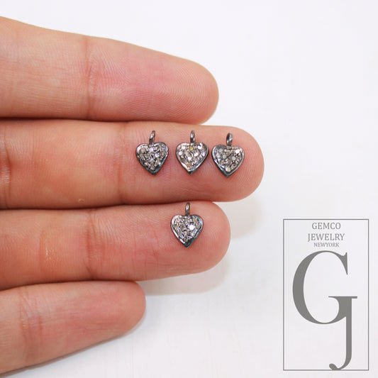 1pc mini Heart Pendant Love Charm Rosecut Pave Diamond Pendant 925 Sterling Silver Handmade Finish Diamond Charms Pendant Jewelry Supplies