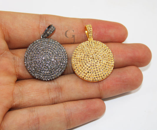 Fashionable round disk pendant, High quality Rosecut pave diamond pendant 925 sterling silver handmade finish diamond necklace pendant