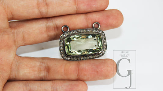 Green amethyst pendant designer Rosecut pave diamond pendant 925 sterling silver handmade finish diamond charm necklace pendant 18" necklace