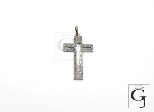 Cross diamond designer pendant Rosecut pave diamond pendant 925 sterling silver handmade finish diamond jewelry necklace pendant