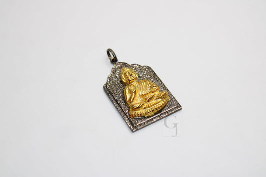Antique Look Buddha Pendant Designer Rosecut Pave Diamond Pendant 925 Sterling Silver Handmade Finish Diamond Charms Necklace Pendant