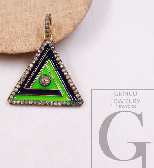 Beautiful Enamel Triangle Royal Pendant Rosecut Pave Diamond Pendant 925 Sterling Silver Handmade Nomad Diamond Charms Necklace Pendant