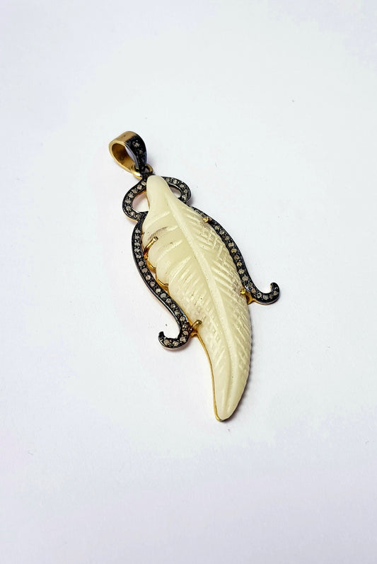 Beautiful 14k Gold Designer Leaf Pendant Rosecut Pave Diamond Pendant 925 Sterling Silver Handmade Finish Diamond Charms Necklace Pendant