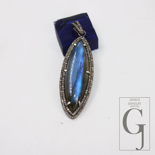 Very beautiful designer labradorite pendant Rosecut pave diamond pendant 925 sterling silver handmade finish diamond charms necklace pendant