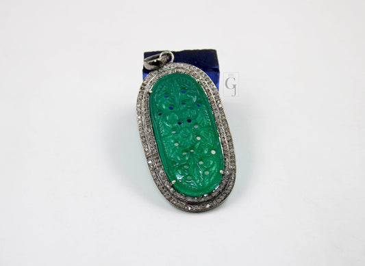 Carving stone green onyx pendant designer Rosecut pave diamond pendant 925 sterling silver handmade finish diamond charms necklace pendant