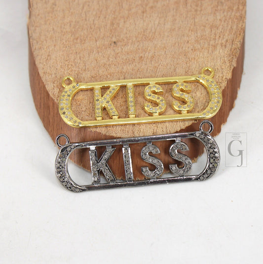 Very Beautiful KISS Pendant Designer Rosecut Pave Diamond Pendant 925 Sterling Silver Handmade Finish Diamond Charms Necklace Pendant