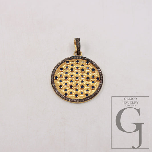 Vermeil gold Blue Sapphire pendant designer Rosecut pave diamond pendant 925 sterling silver handmade finish diamond pendant charm jewelry