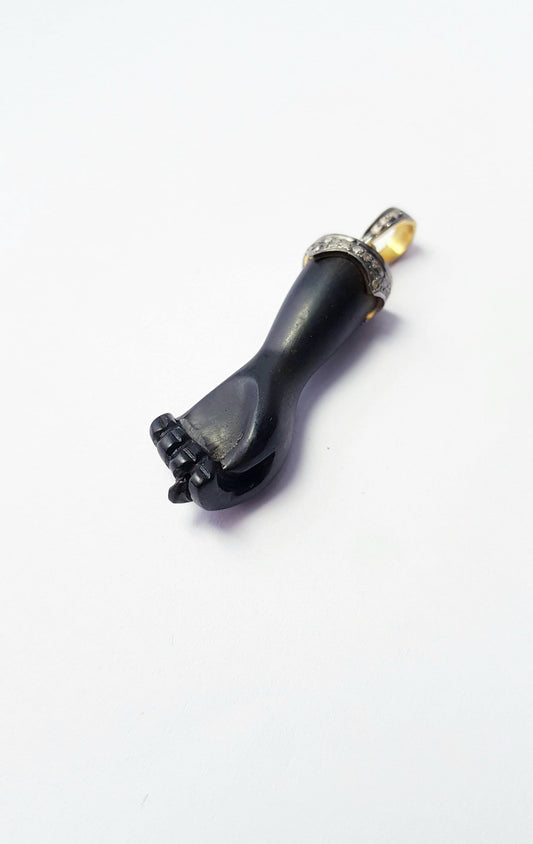 Beautiful Wooden Pave Diamond Pendant 925 Sterling Silver Handmade Finish Fist Design Diamond Pendant Jewelry