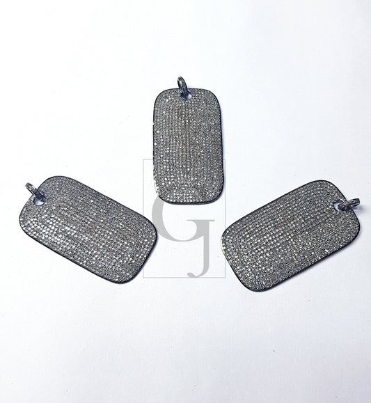 Pave diamond rosecut dog tag pendant 925 sterling silver pendant handmade diamond pendant beautiful paved diamond pendant