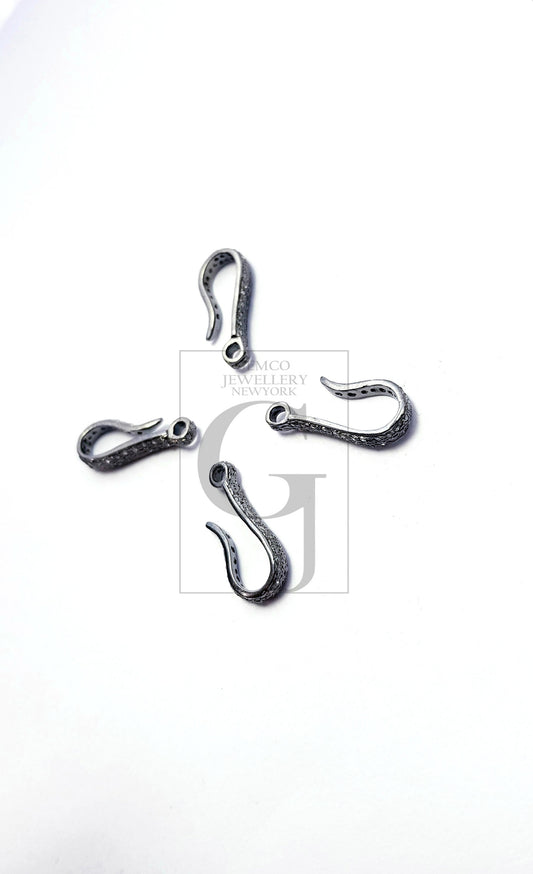 Rosecut pave diamond pendant 925 sterling silver handmade finish hook shaped diamond necklace hooke jewelry