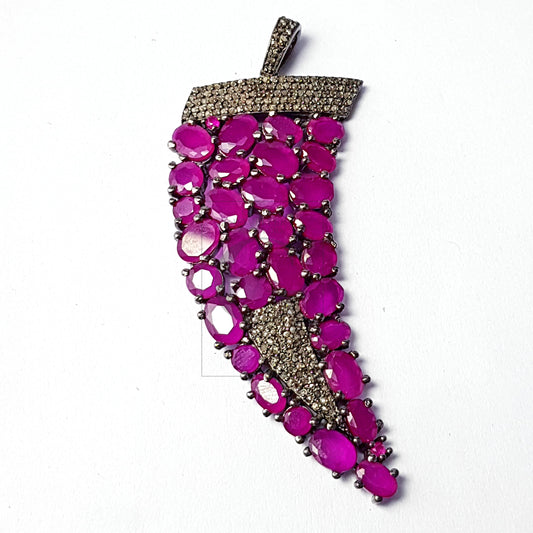 Very Beautiful Horn Designed Charm Rocecut Pave Diamond Pendant 925 Sterling Silver Handmade Finish Diamond Jewelry